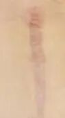 一般为线状,稍微突起,颜色和周围皮肤相近。